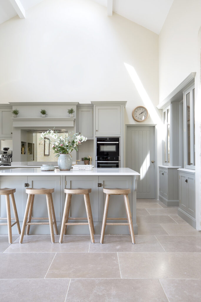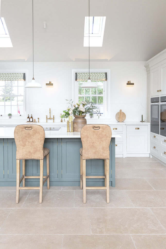 Honed tiles are a sleek and contemporary option for those wanting a totally smooth and matt finish with a soft sheen and straight cut edges to their Dijon limestone. Whilst rustic country flooring continues to be popular, a honed tile is a wonderful option for modern kitchen spaces.